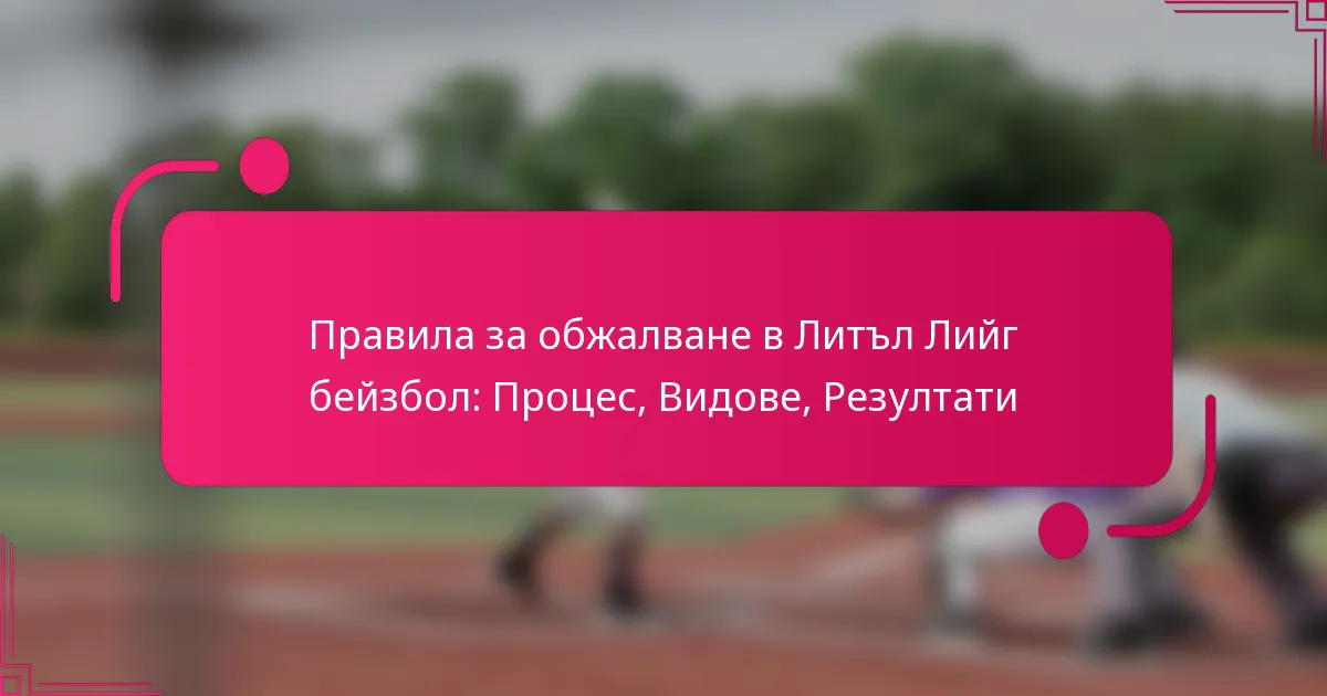 В Литъл Лийг Бейзбол има няколко вида обжалвания, които могат да се правят относно решения от мачове, допустимост на играчи, тълкувания на правила и дисциплинарни действия. Разбирането на тези обжалвания е от съществено значение за треньорите и родителите, за да навигират ефективно в сложността на играта.