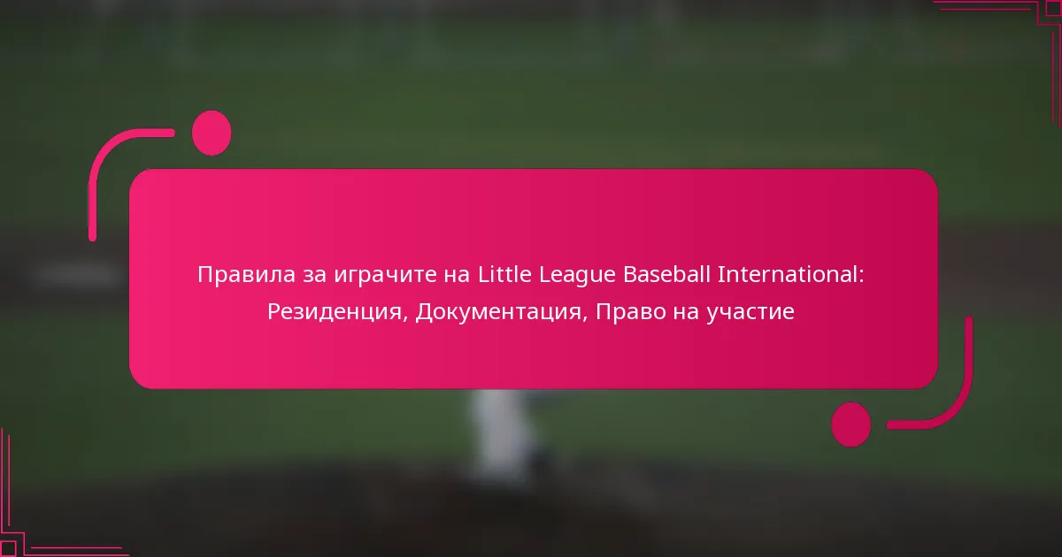 Подаването на документация за международни играчи в Малката лига по бейзбол включва предоставяне на специфични документи за местоживеене и допустимост. Това осигурява спазването на правилата и разпоредбите на лигата за участие.