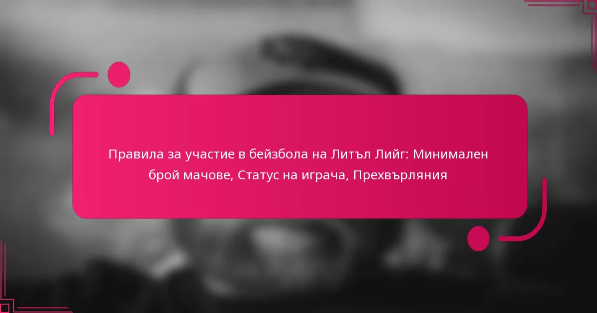 Little League Baseball има специфични правила за участие, които изискват играчите да участват в минимален брой игри, за да запазят правото си на участие през сезона. Ключови фактори като възраст, местоживеене и избор на отбор определят статуса на играчите, осигурявайки спазване на регулациите на лигата. Освен това, процесът на трансфер позволява на играчите да сменят отбори, предоставяйки им възможности да намерят най-подходящото място за своите умения и интереси.