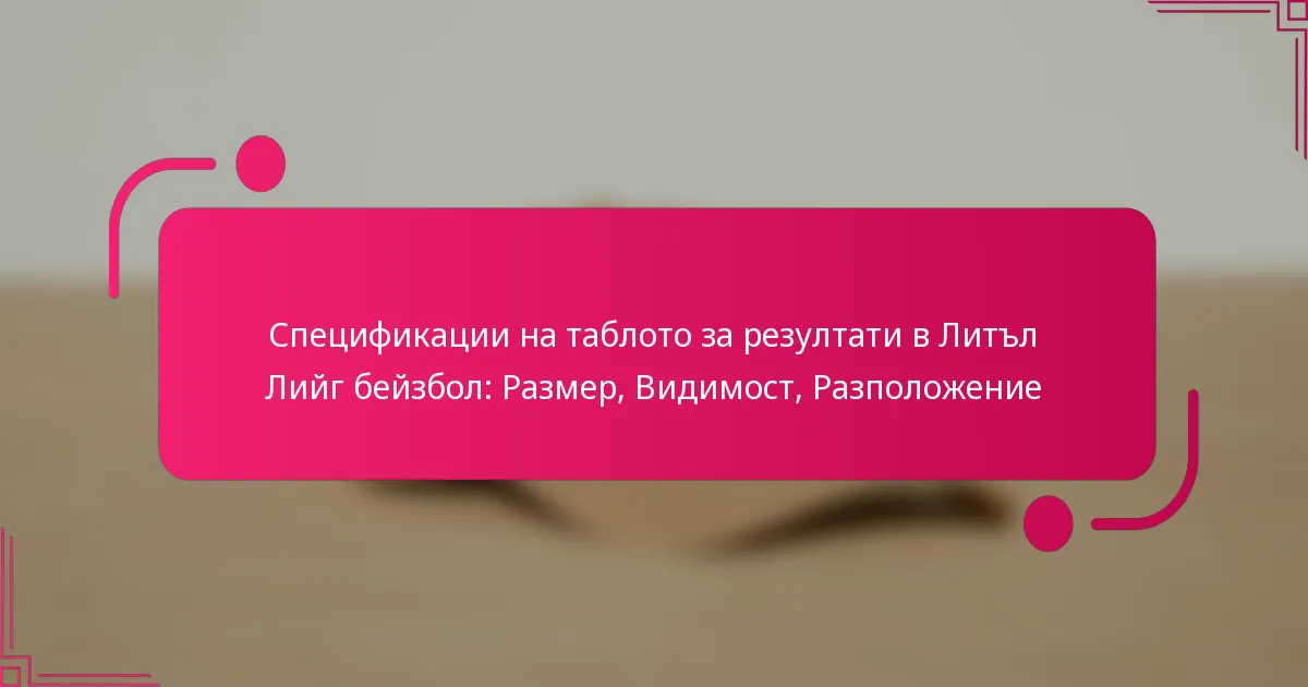 Таблата за резултати в бейзбола от Литъл Лийг трябва да отговарят на конкретни спецификации, за да осигурят видимост, издръжливост и съответствие с стандартите на лигата. Основните фактори включват размери, материали, технологии за дисплей, ограничения на теглото и спазване на установените регулации.