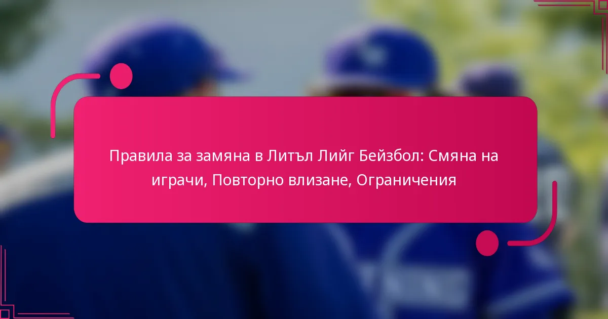 Правилата за замяна в Литъл Лийг Бейзбол определят как и кога играчите могат да влизат или излизат от играта. Те имат за цел да предоставят структурирана възможност на треньорите да управляват своите състави, като същевременно осигуряват на всички играчи възможността да участват. Разбирането на тези правила помага за поддържане на конкурентен баланс и насърчава спортния дух.