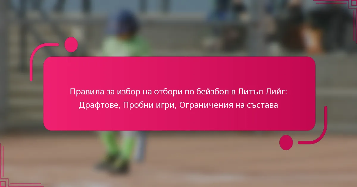 Изборът на отбори в бейзбола на Little League включва специфични правила и процеси, които осигуряват справедливи и равноправни възможности за играчите. Тези правила обикновено включват драфтове, проби и ограничения на състава, които помагат за поддържането на конкурентен баланс и подобряват общото изживяване за участниците.